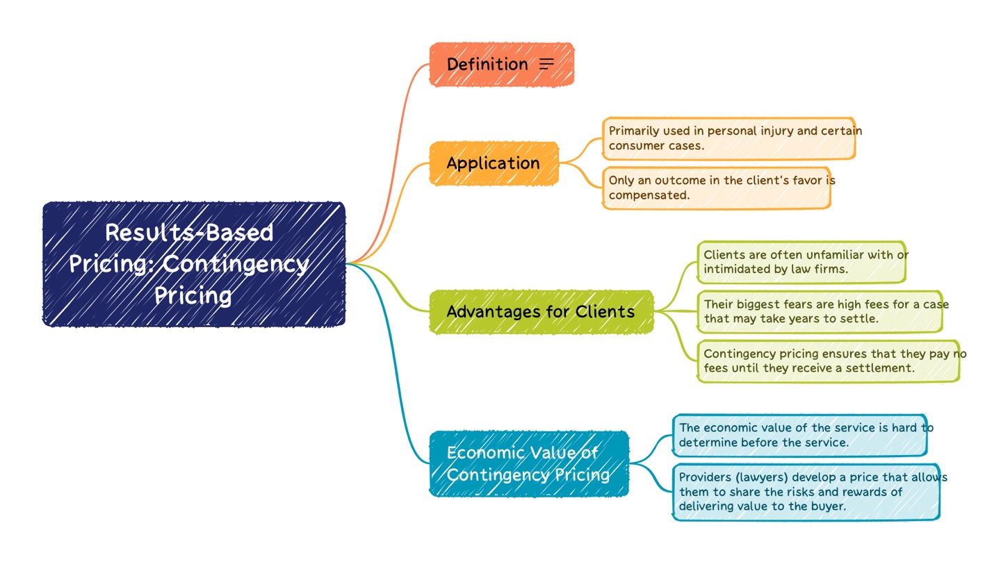 단락 (A): 단락 C에서 소개한 개념을 바탕으로 이 단락에서는 우발적 가격 책정에 대한 고객의 관점을 자세히 살펴봅니다. 특히 법률 절차에 익숙하지 않고 높은 수수료에 대한 두려움이 있는 고객에게 이 방법이 왜 유익한지 설명합니다.