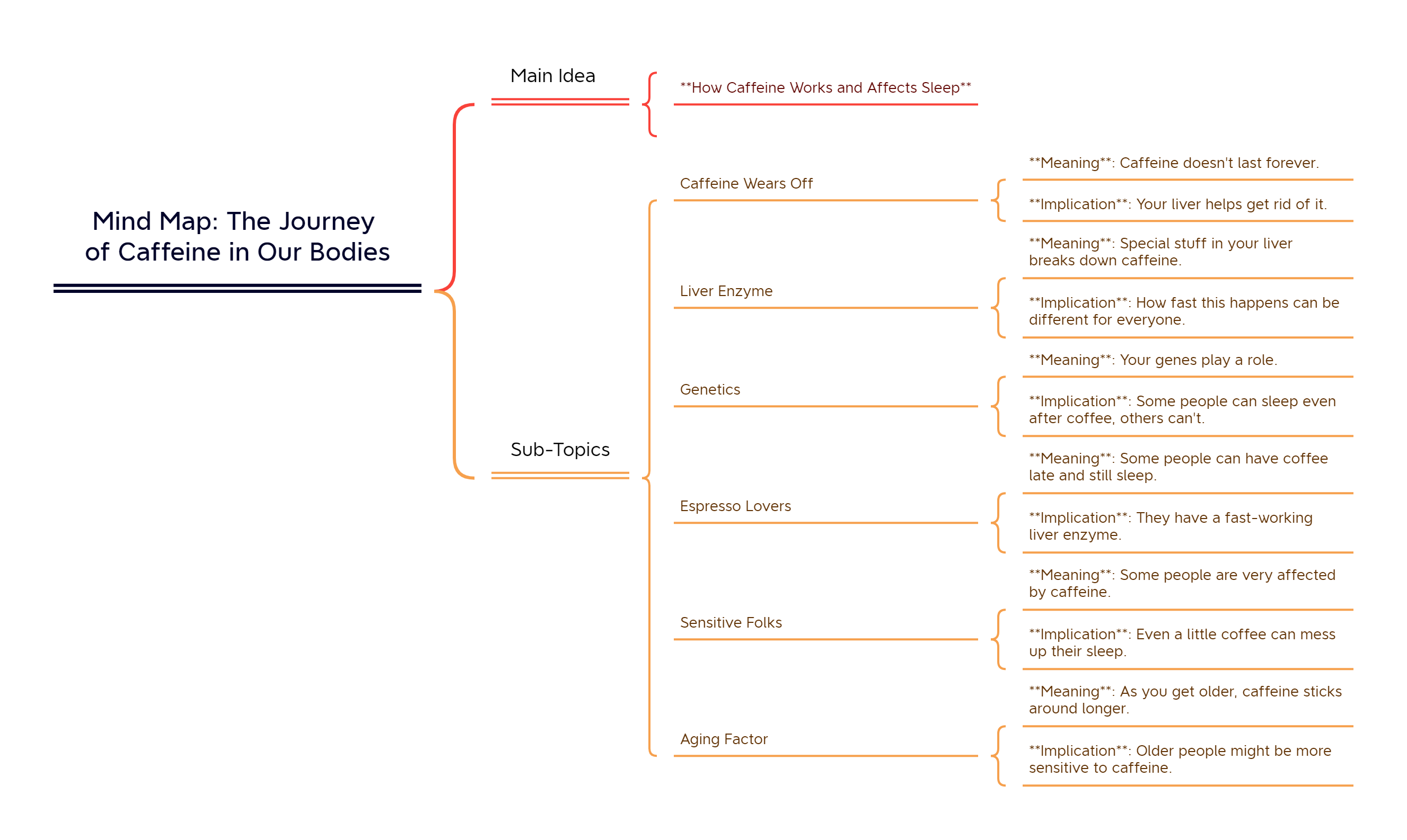 카페인의 '충격'은 확실히 점차 사라진다. 카페인은 여러분의 간 안에 있는 효소에 의해 여러분의 신체로부터 제거되는데, 이 효소는 시간이 지남에 따라 그것을 점진적으로 분해한다. 대체로 유전적 특징 때문에, 어떤 사람들은 카페인을 분해하는 더 효율적인 형태의 효소를 갖고 있는데, 이는 간이 그것을 혈류로부터 더 빠르게 제거할 수 있도록 한다. 이 몇 안 되는 사람들은 저녁과 함께 에스프레소를 마시고도 아무 문제없이 한밤중에 깊이 잠들 수 있다. 그러나 다른 사람들은 더 느리게 작용하는 형태의 효소를 가지고 있다. 그들의 신체가 같은 양의 카페인을 제거하는 데 훨씬 더 오랜 시간이 걸린다. 결과적으로, 그들은 카페인의 효과에 매우 민감하다. 아침에 마시는 한 잔의 차나 커피는 그날 대부분 동안 지속될 것이고, 심지어 이른 오후라도, 두 번 째 잔을 마신다면, 그들은 저녁에 잠드는 것이 어렵다는 것을 알 것이다. 노화는 또한 카페인 제거 속도를 변화시킨다. 즉, 우리가 나이가 들수록 우리의 뇌와 신체가 카페인을 제거하는 것이 더 오래 걸리고, 따라서 우리는 노후에 카페인의 수면을 방해하는 효과에 더 민감해진다.