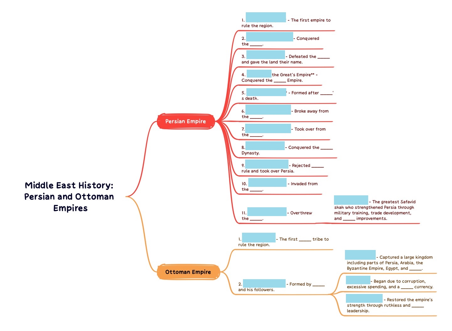 10) The ____________, a group of Turks, rejected Islamic rule and took over the land of Persia.
